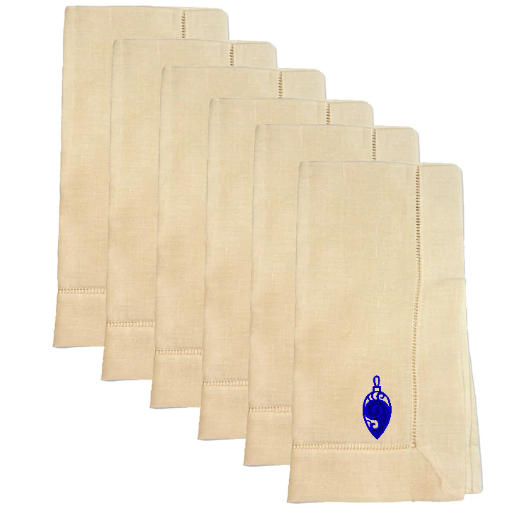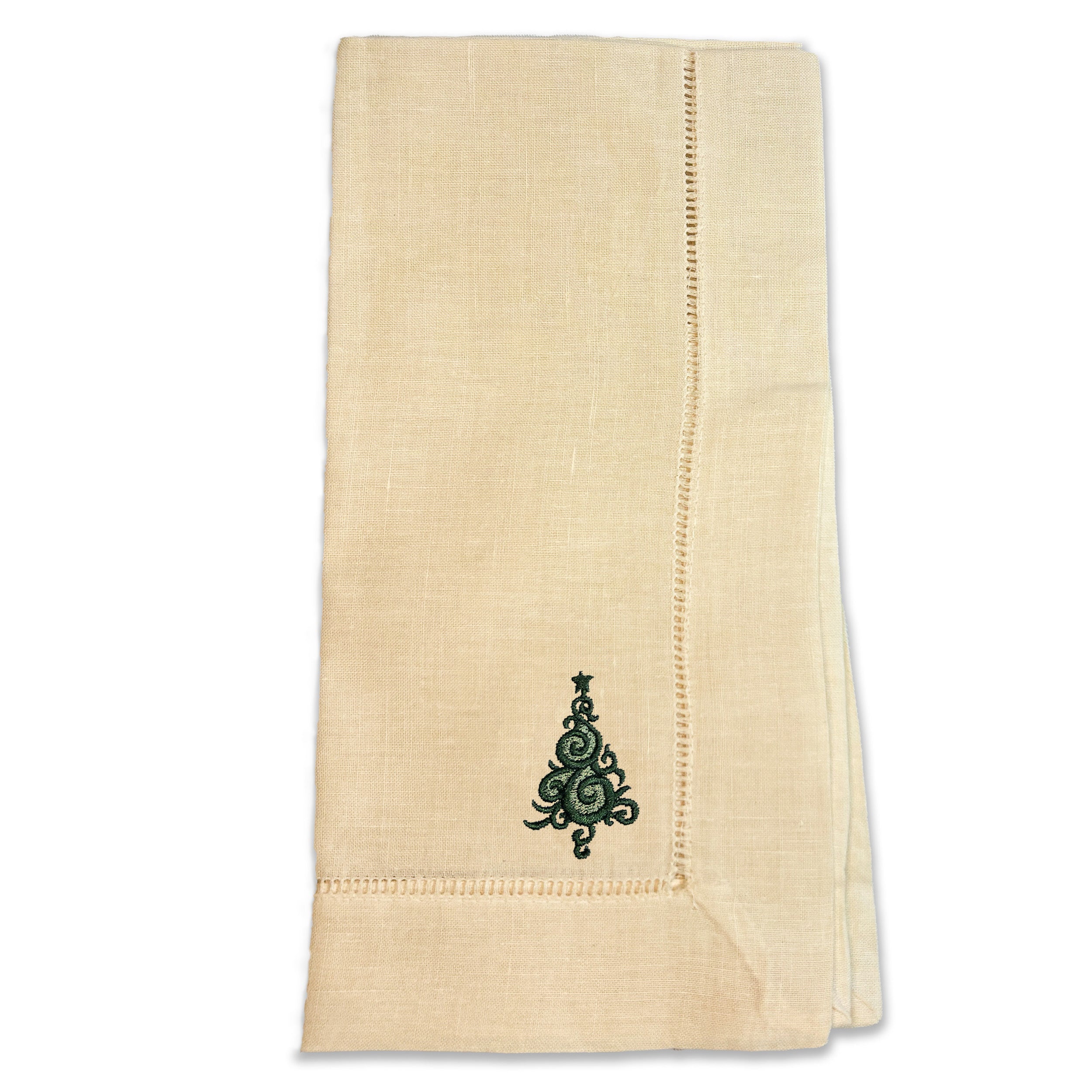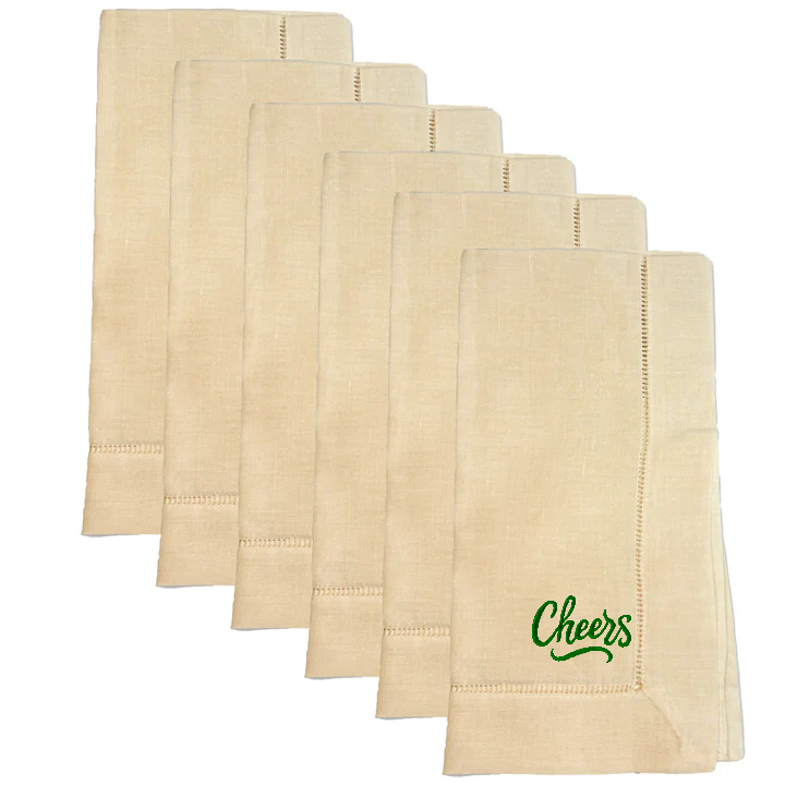 This six piece set features an elegant Christmas design embroidered in the bottom right of each napkin.
