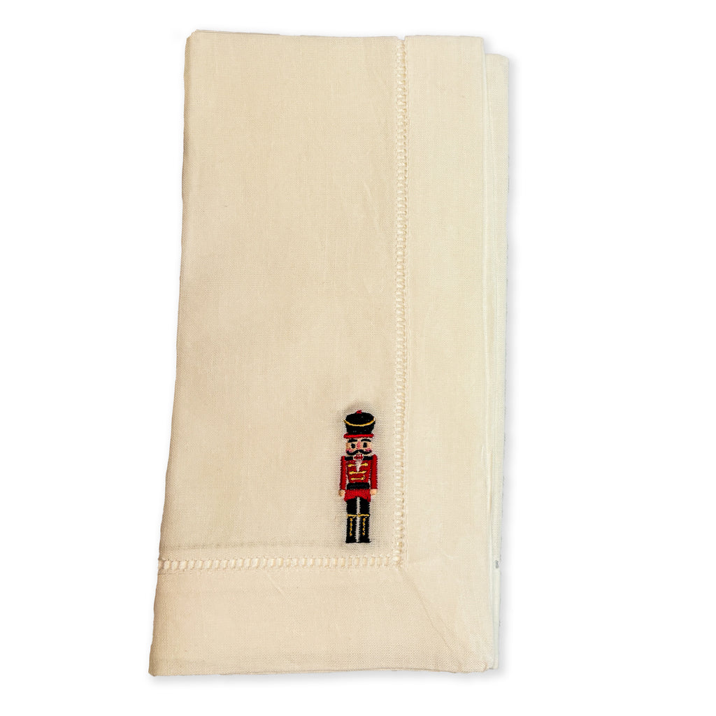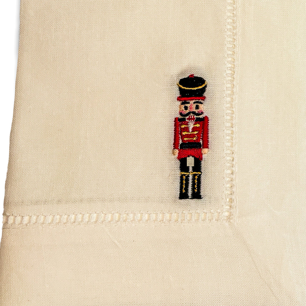 Enhance your table with our 20x20" Dinner Napkins, featuring a Classic Single Hemstitch and a blend of 55% linen and 45% cotton. This set of 6, with tagless design and 2 inch nutcracker embroidery, combines luxury and durability for any occasion.