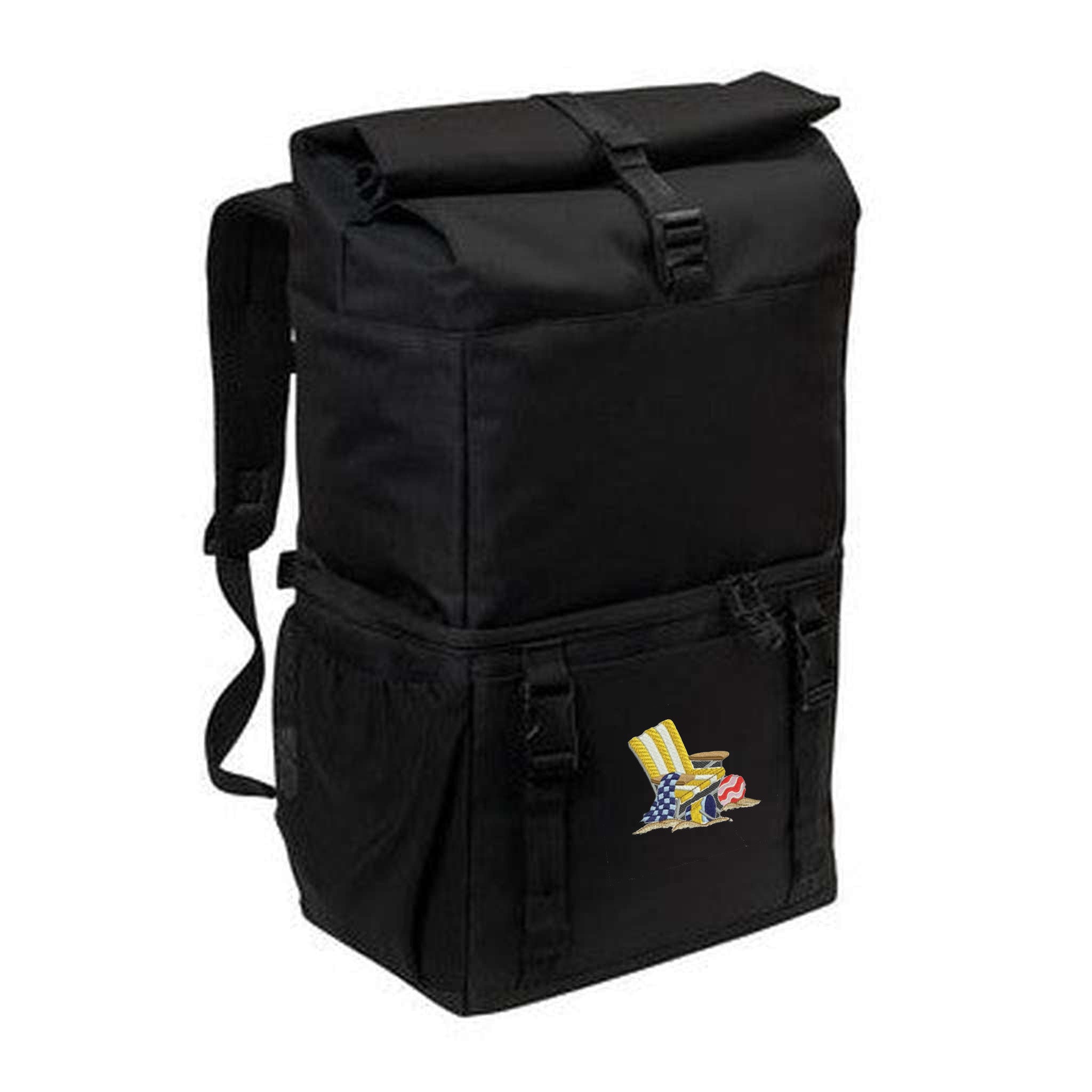 18-Can Backpack Cooler with Embroidered Beach Chair Design